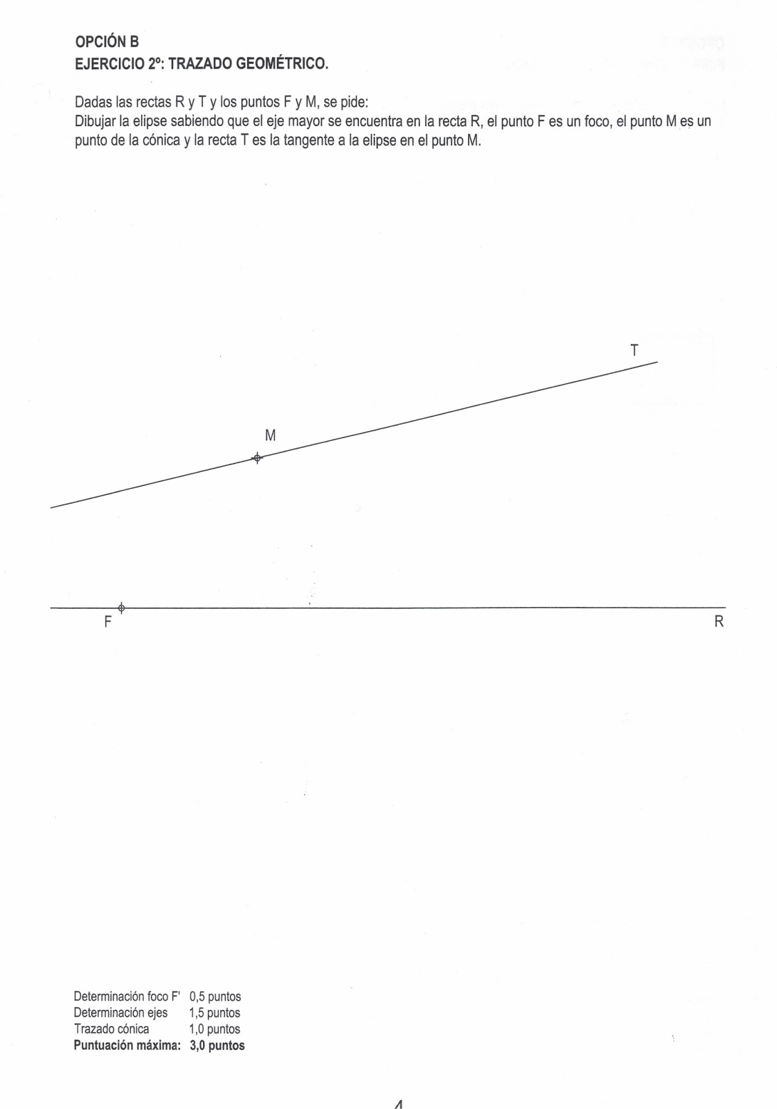 - Dibuja las trazas P y P' de un plano (P) que contiene a una recta R que es horizontal. Dicha recta R pasa por el punto medio de la altura de la pirámide, y forma un ángulo de 45º con el plano vertical de proyección. Dicho plano (P) es perpendicular al primer plano bisector.